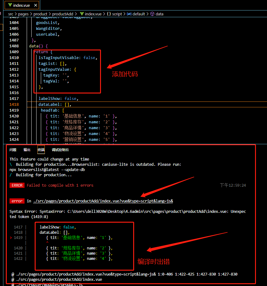 后台前端,编译失败,提示如图,请管理看下,怎么回事呢。