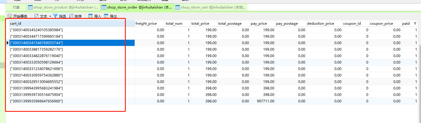 order表cart_id是数组值是数字, 在cart表没有相应数据? 请问order表的cart_id关联的数据在哪, 我需要根据订单反查商品成本价