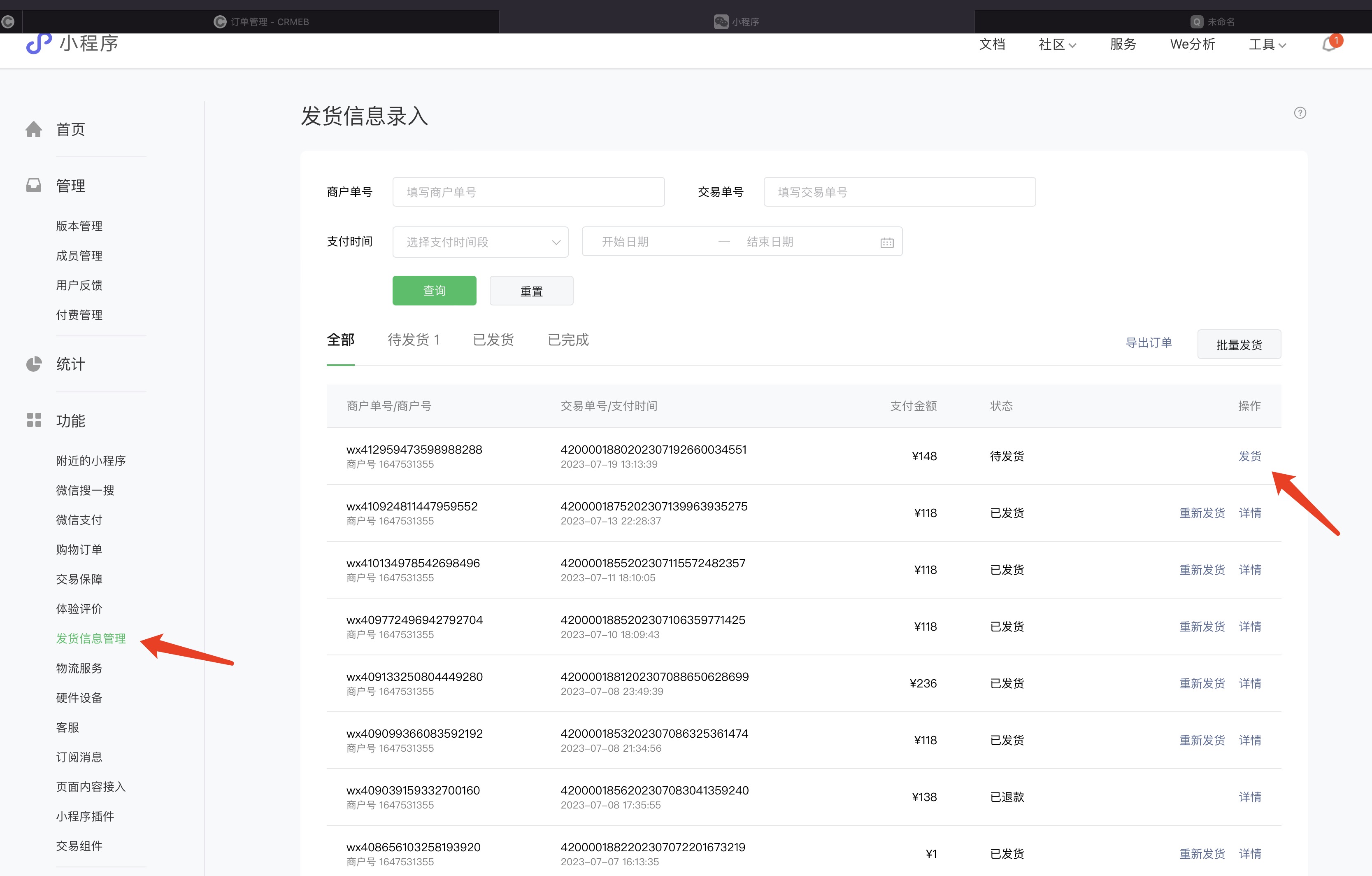 后台发货后无同步到小程序后台,需要在小程序后台再次填写物流非常麻烦,怎么处理?????????????????