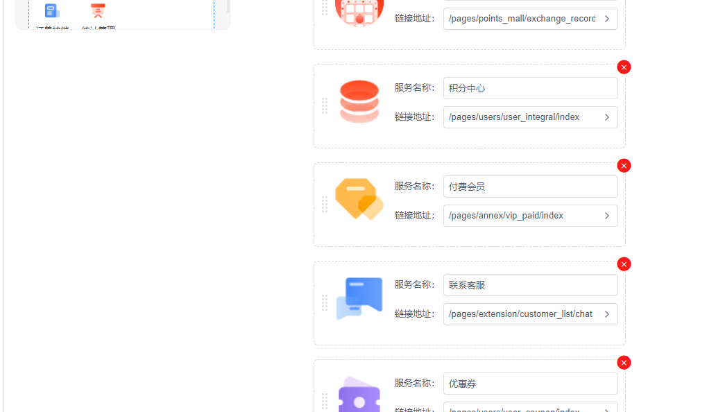首页设置了一个客服链接 和个人中心客服链接是一样的,前台链接到的地址不同。首页自己设置的会转到商城客服系统,个人中心是转到小程序客服系统。同样的链接 就换了一下地方 为什么转到的地址不同呢?