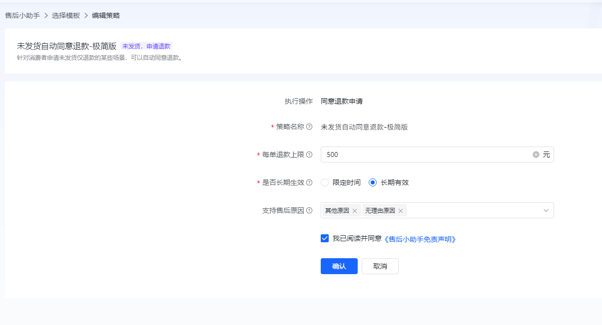 针对“未发货仅退款”申请,系统自动退款,节省大量后台人工操作成本,也方便消费者误下单快速退款,不需要消费者眼巴巴干等后台人工处理退款,导致客户体验差。