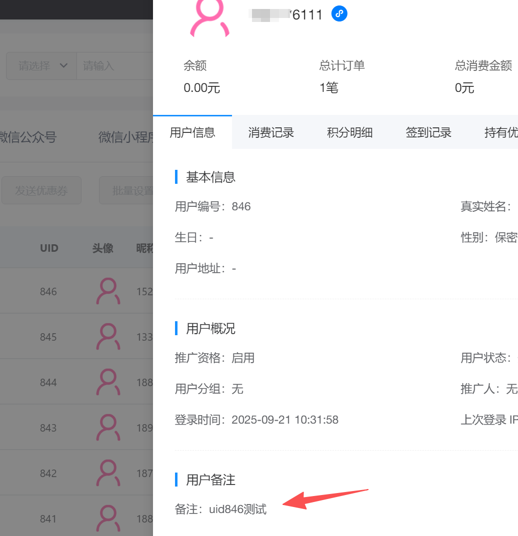 场景:在用户列表内,当查看某一用户信息后(图1),点击其他任何用户【编辑】(图2),会缓存滞留缓存之前查看过的信息。目前观察用户备注会有,其他是否还有错误信息需要官方进一步测试。