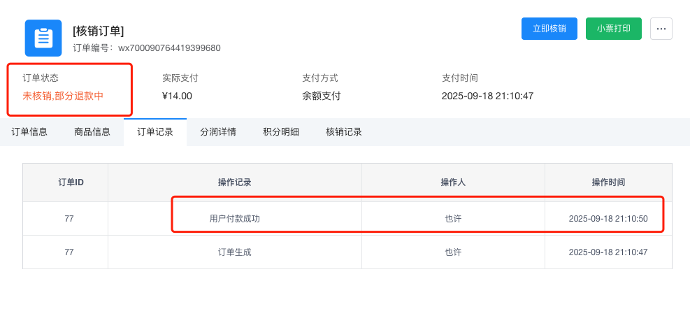 如下图,用户下单后订单 部分订单的状态会变成退款中,并没有进行任何操作,有些订单又是正常的,求解, 多店版本v3.2,有二开,但并未调整下单流程
