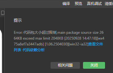 小程序 微信开发者工具,提示 代码太大,怎么弄好点
