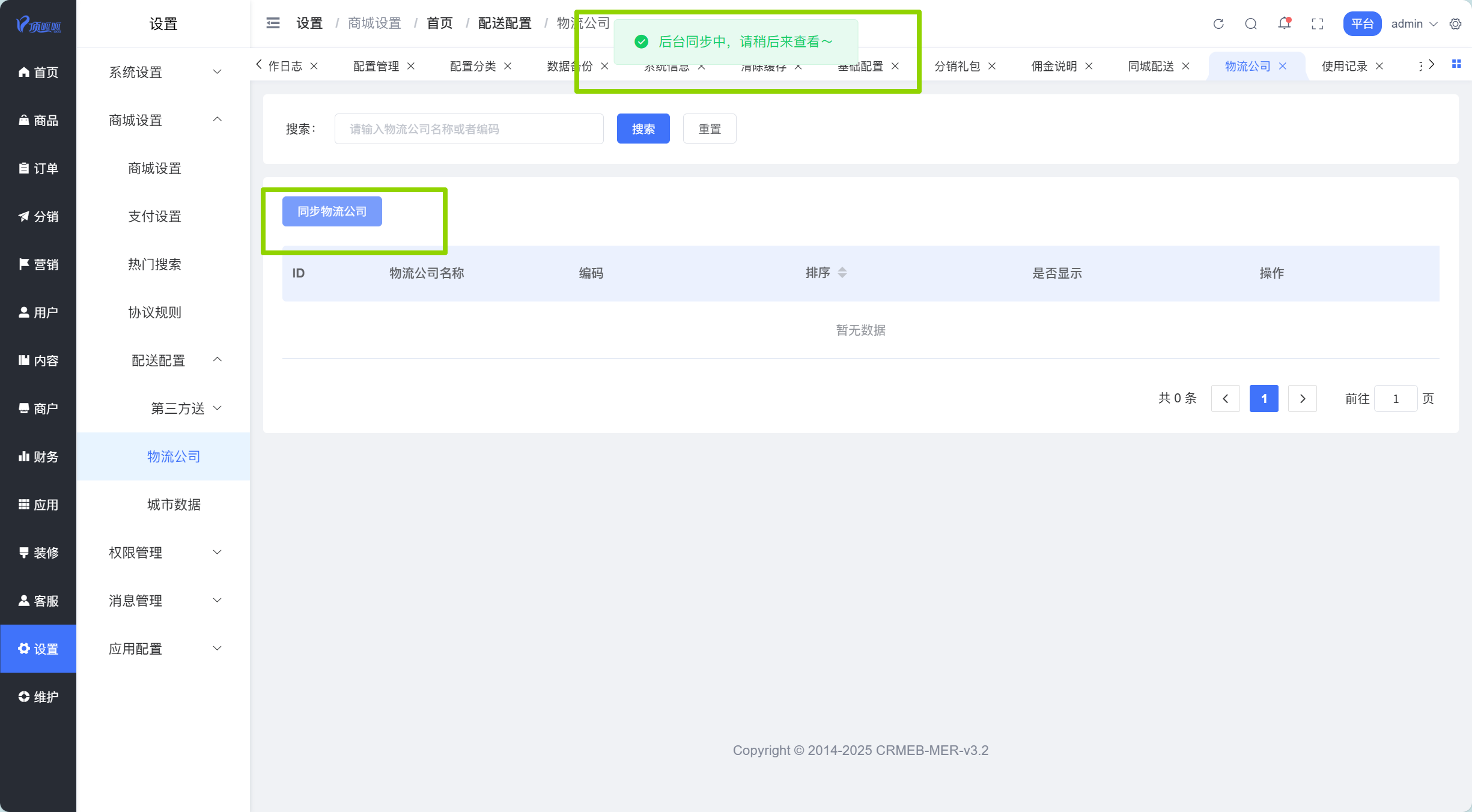 配送设置里面,这个物流公司同步不出来是什么问题?商户里面的发货方式只有手动填写吗?