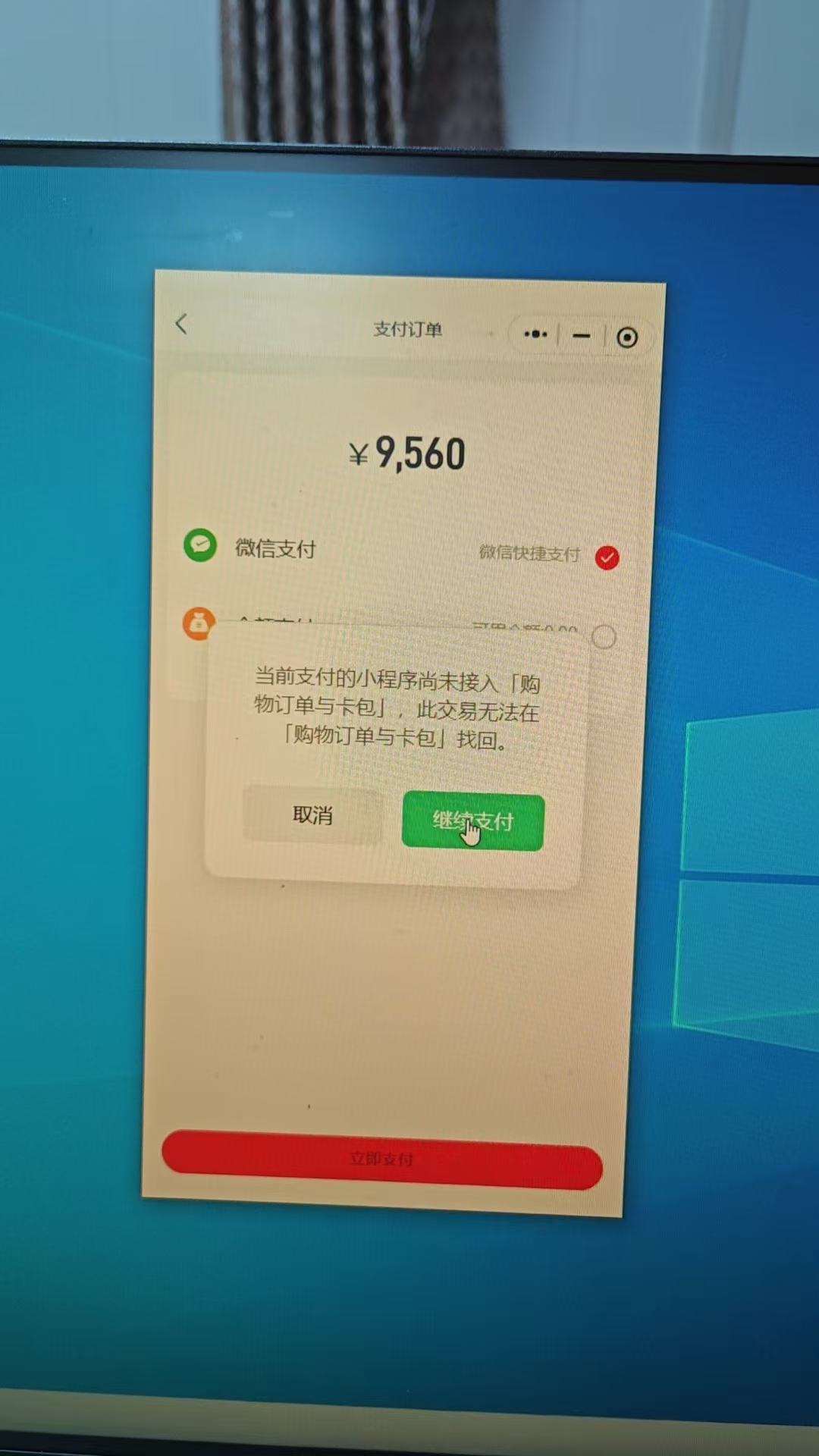 如何关闭 “当前支付的小程序尚未接入【购物订单与卡包】”弹窗,想直接进到支付界面