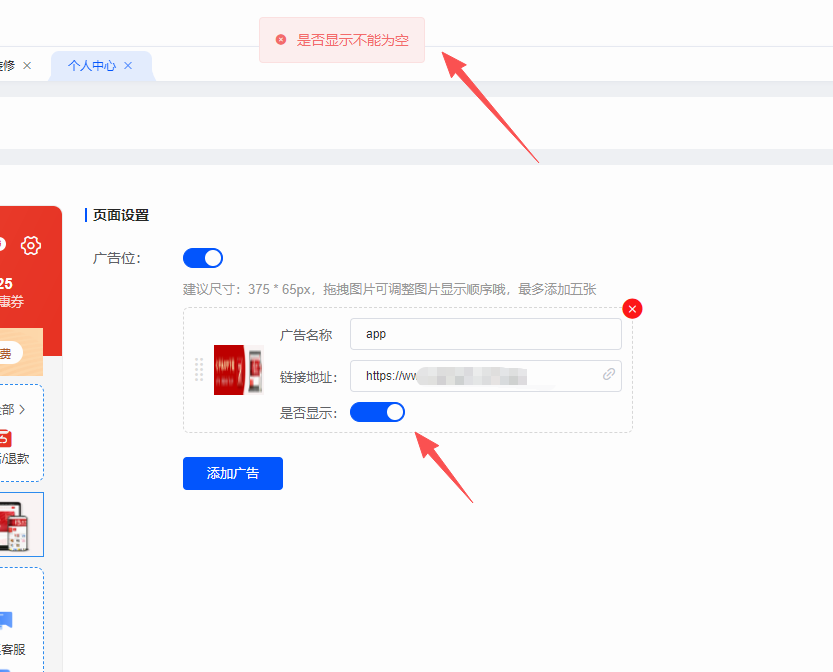 升级5.6.4版本后,发现此类问题,已经开启对应的开关,但是保存不了,会提示 “是否显示不能为空”