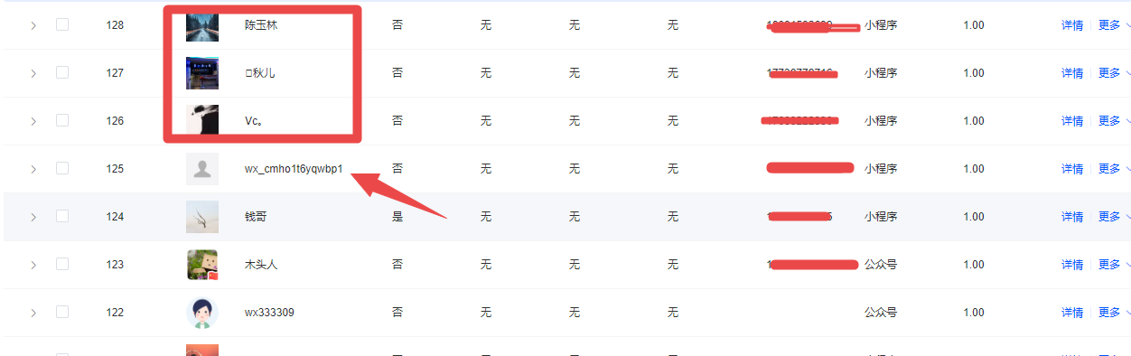 另外还有一个问题就是用户首次访问小程序使用微信登录授权的时候,默认的头像是个空白的,需要点一下才能出来用户自己的头像,昵称也是一样,如果用户不点那个默认就不会跳出用户头像,用户昵称也是一样的,这样的结果就会出现小程序注册的用户头像是白色的,昵称是wx----开头的一串字符,看起来也不舒服,如下图: