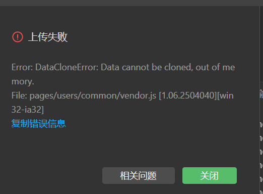 微信小程序上传提示失败,已经改过内存限制和版本了,还是不行。