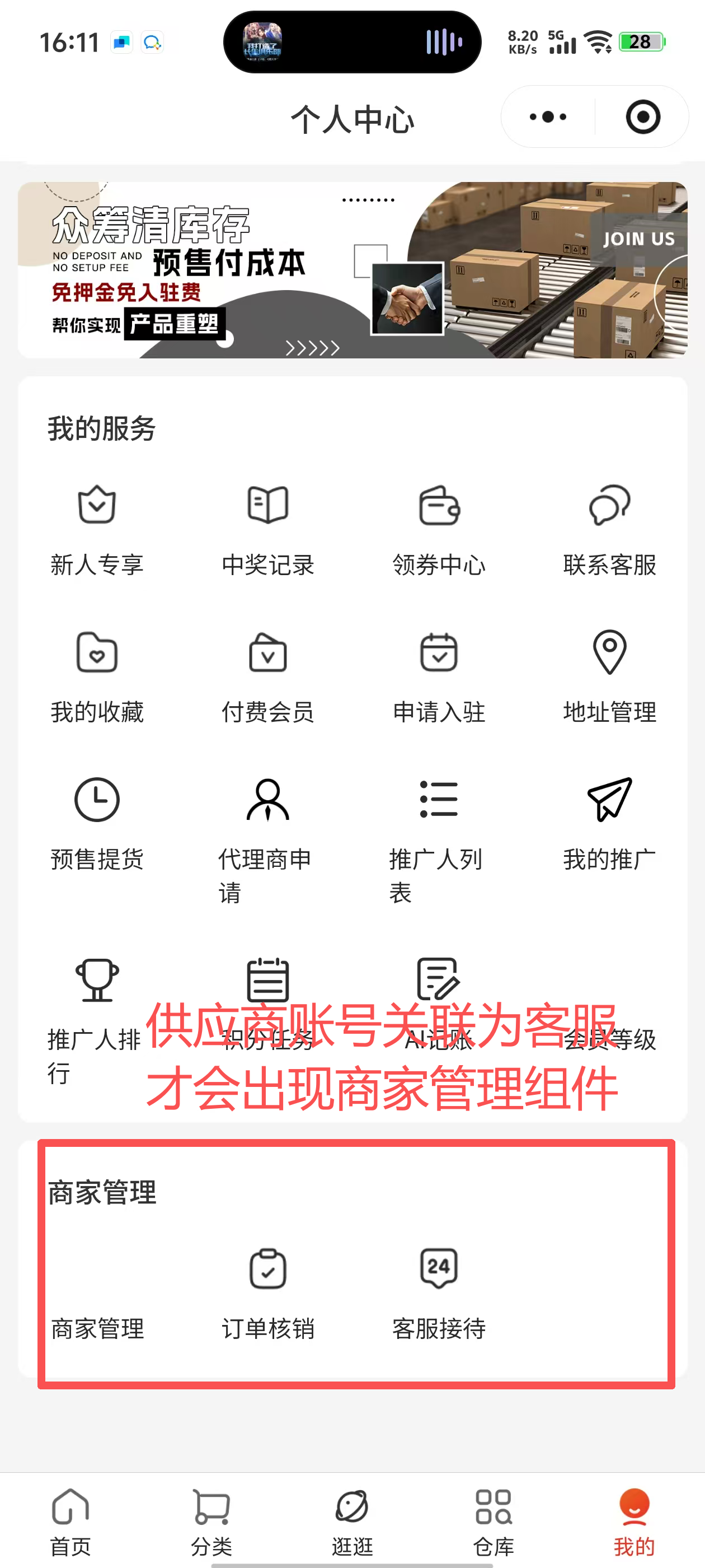 当供应商申请入驻成功后,供应商绑定的手机号登陆小程序后,无法在前端的个人中心中看到商家管理组件;需要将其添加为客服账号;该供应商的前端个人中心才会出现商家管理,请问下关联逻辑正确是什么样的?