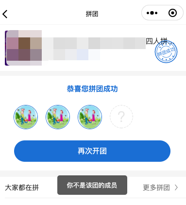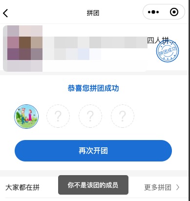 2、还有一小部分四人团拼团竟然五个人拼团成功