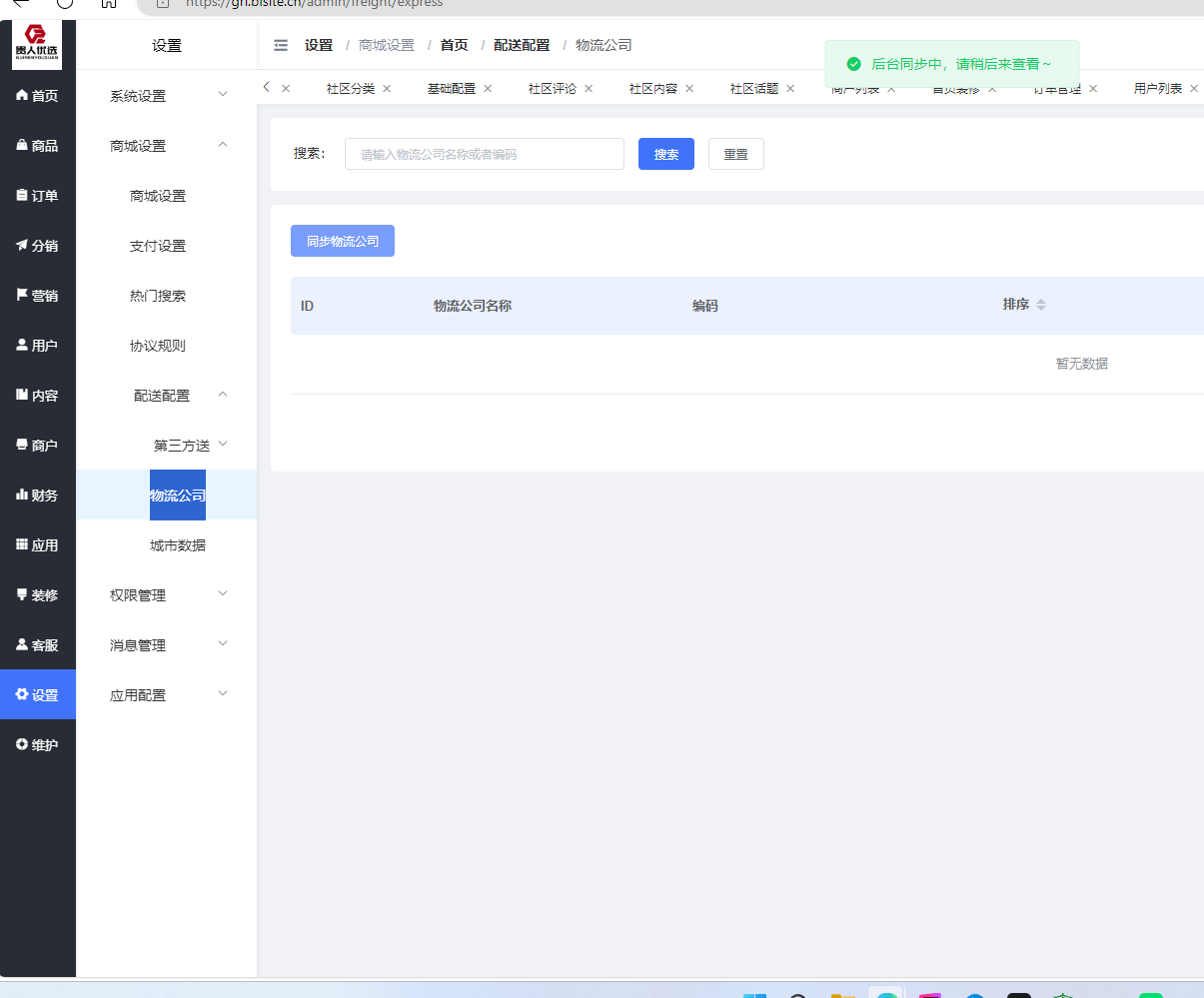同步物流公司没有反应,php多商户3.2,列队也开了重启无数遍也没有用。