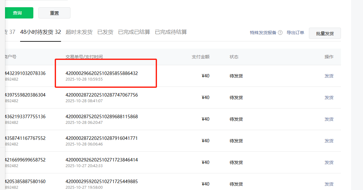 你好,我们的订单都在我们系统程序后台已经发货了,但是在微信小程序订单管理里边确显示有32个48小时未发货的订单
