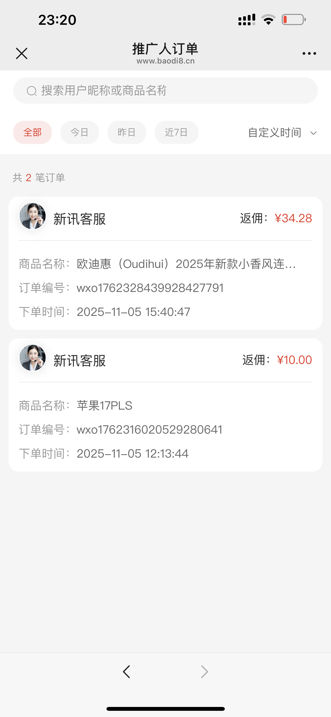分佣在订单里有,佣金里没有,客户早已经确认好评