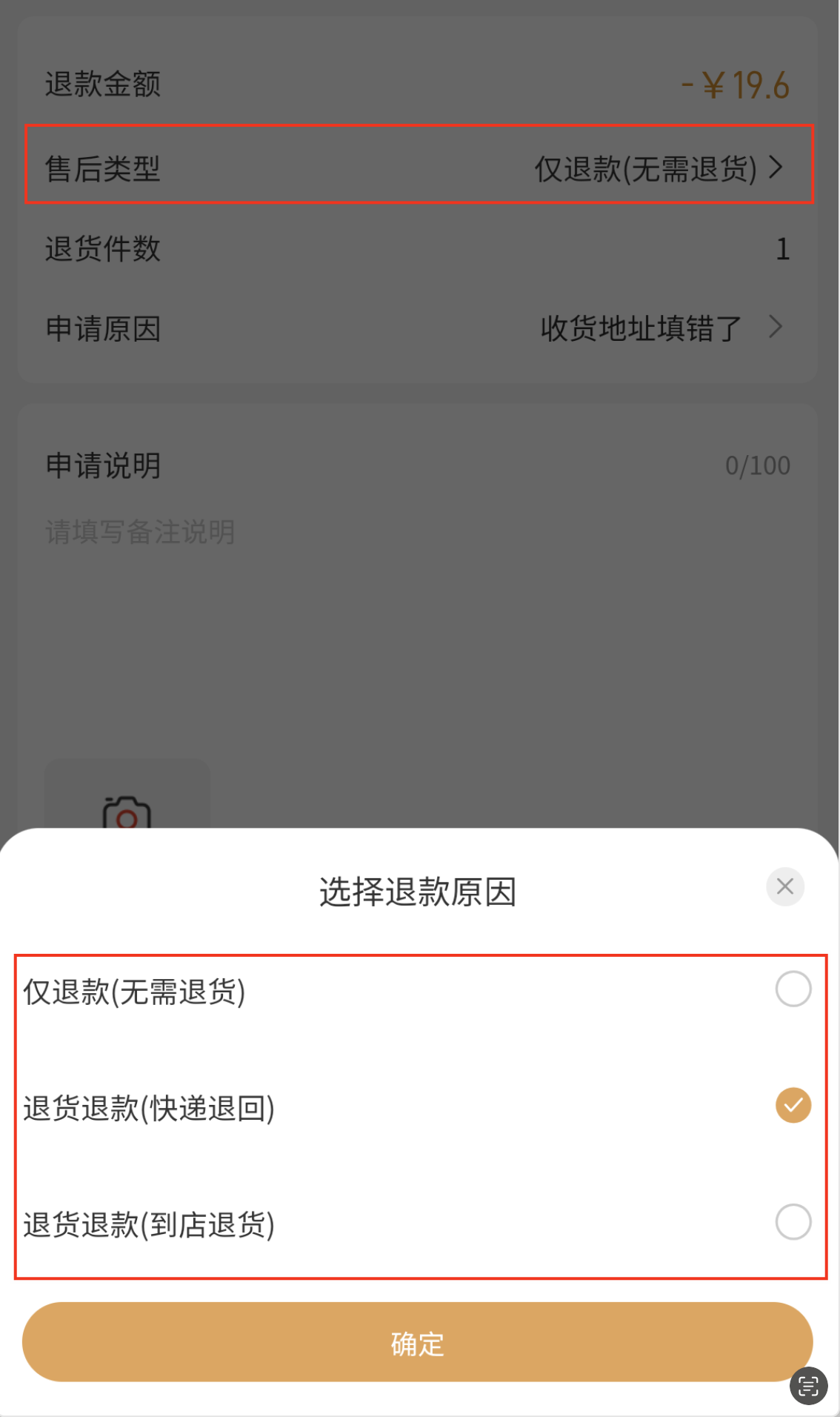 申请售后,售后类型是不能更改或者添加的吗?(默认有:仅退款/退货退款/到店退款),在后台“交易设置”中只找到“申请原因”修改或添加