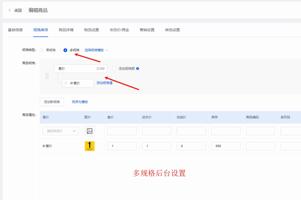 图一,单规格的前端商品为0元,图三,多规格前端商品为正常显示,请排查给出修复方案