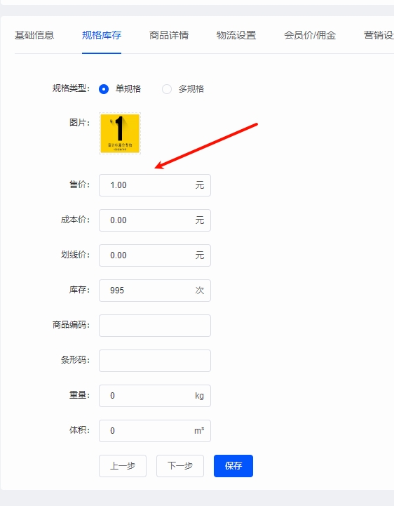 如题,将商品设为单规格价格时,到手价会显示为0元?,多规格的到手价是正常显示价格的,这是什么原因?