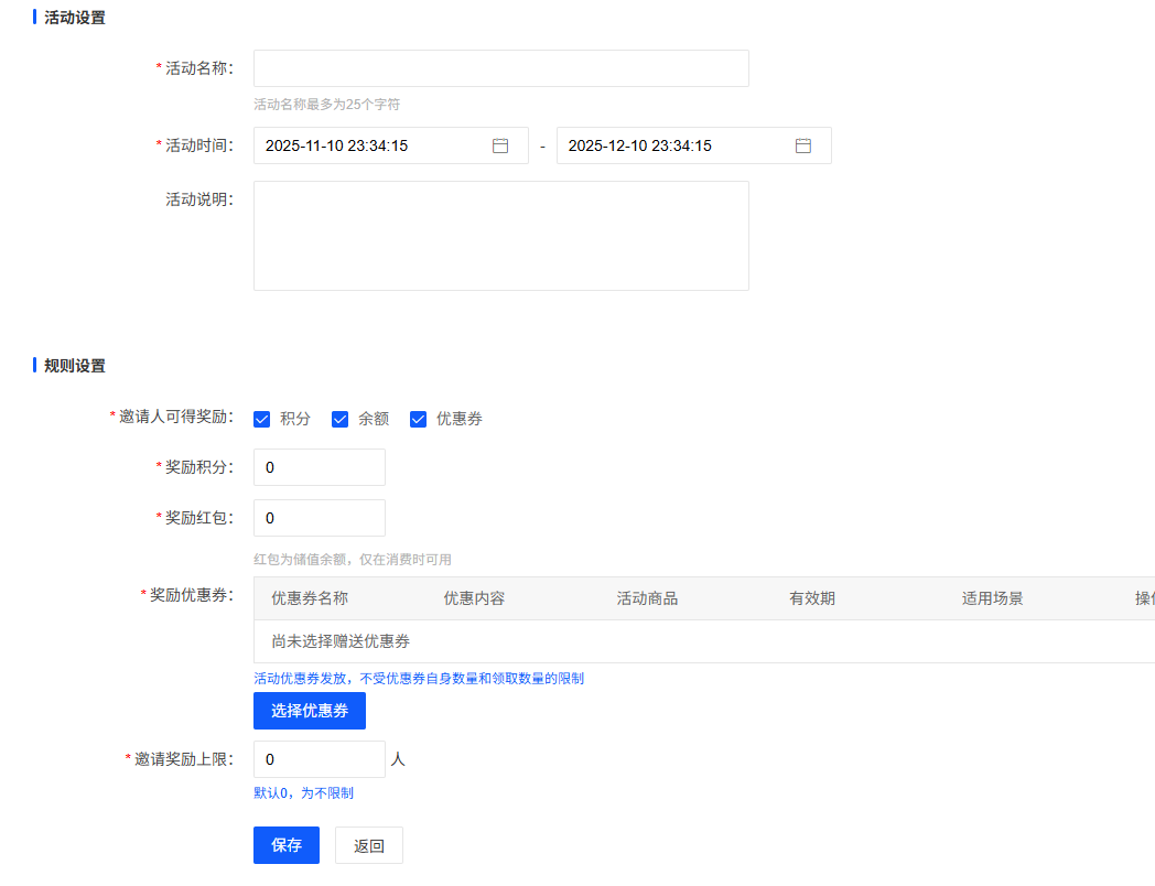 3.邀请奖励:不参与分销,单纯的邀请人给奖励,奖励积分,余额,优惠券等,先注册进来,在慢慢的忽悠他来店里消费