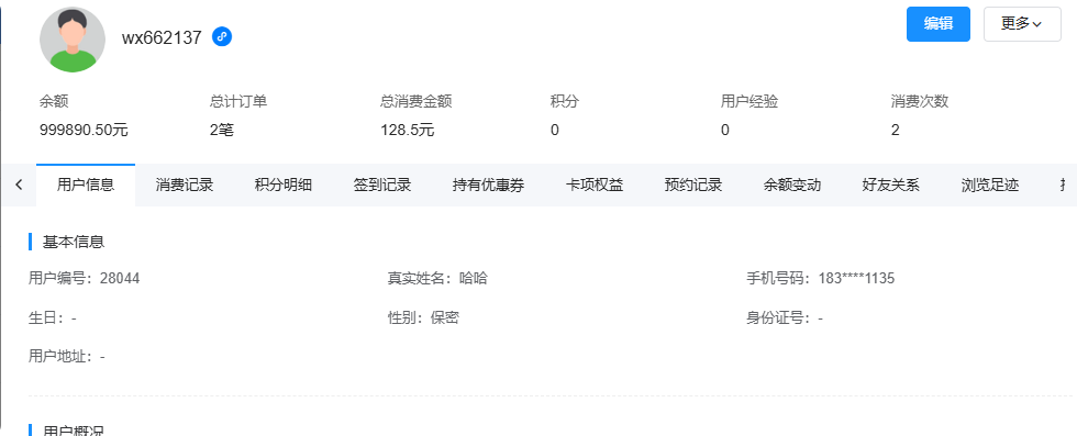 用户资料中没有可以编辑或者多次添加的地方,只有消费记录,积分明细,签到记录等,这些在维护客情和分析用户未成交原因中起不到作用,增加一些跟进记录,可以让销售人员或服务过程中互动来收集一些客户数据,了解客户的背景信息、购买行为和偏好,针对性的推销,提高营业额,要不然服务人员流动比较大,交接不全面或者根本没有交接,导致客户流失