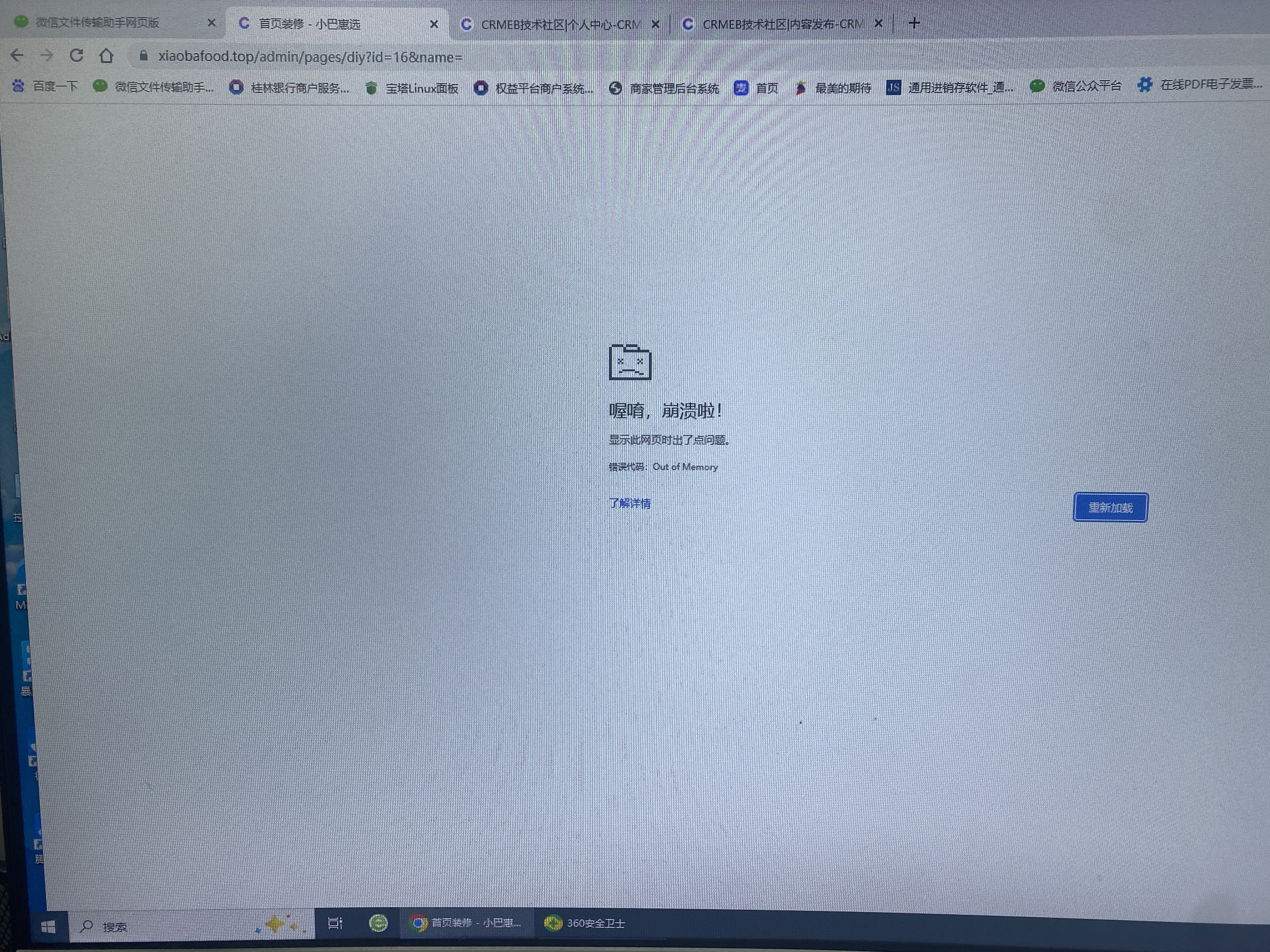 升级V3.5版本之后,打开订单列表、装修页面,经常网页崩溃或者内存不足提示:情况如图片显示。怎么解决