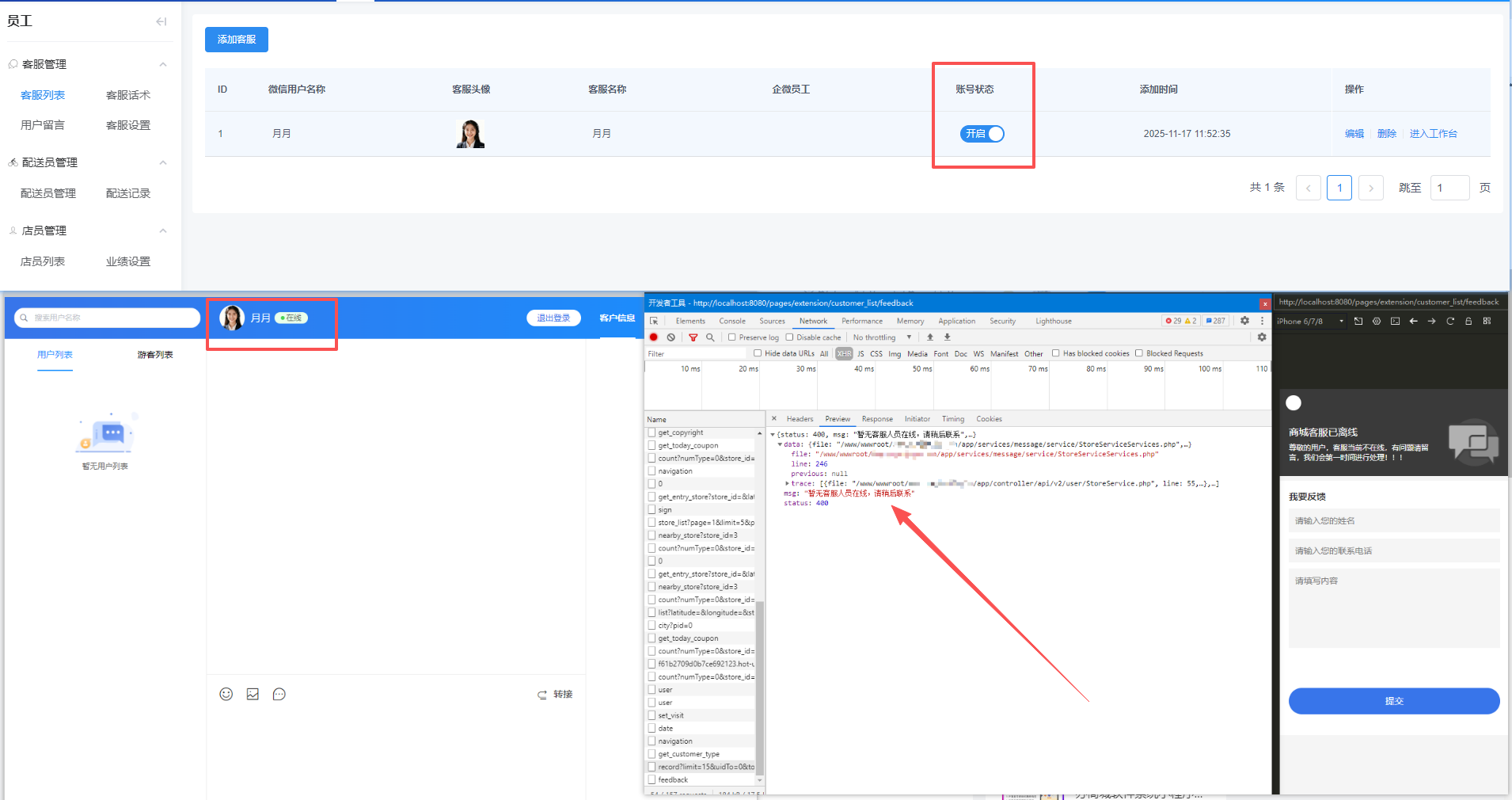 客服在线,h5显示商城客服已离线是怎么回事,是哪里配置错了吗?