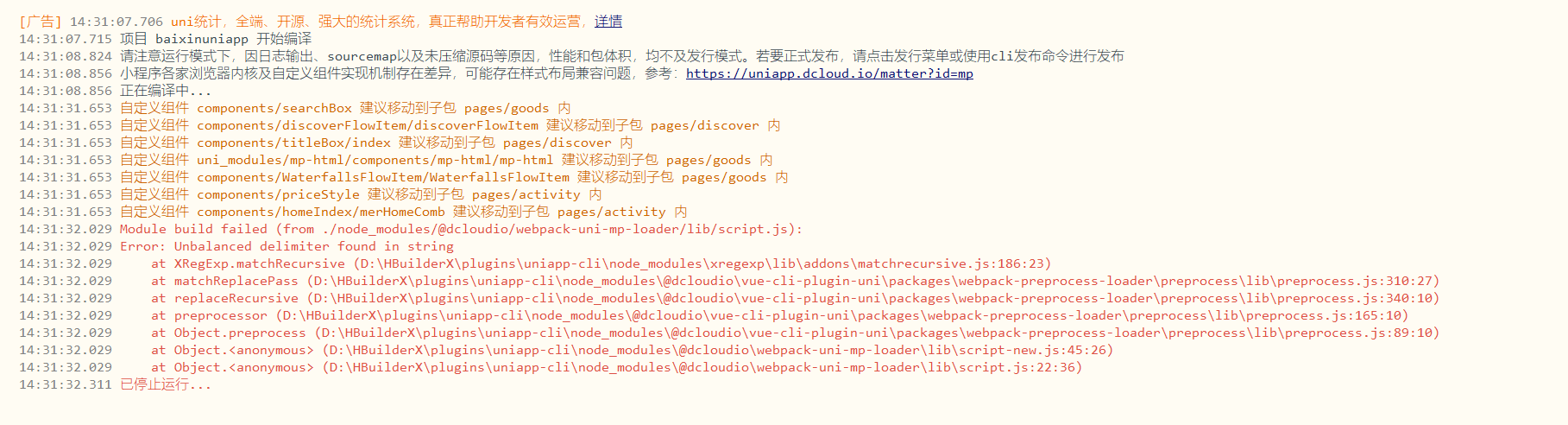 unaipp开发小程序的时候小程序运行报错,报错信息如下图请帮忙看下是什么问题