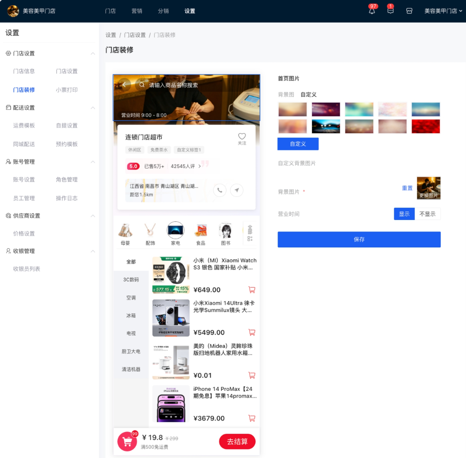 1.门店首页装修功能 2.门店显示文章 3.门店显示独立门店LOgO,独立店名 4.