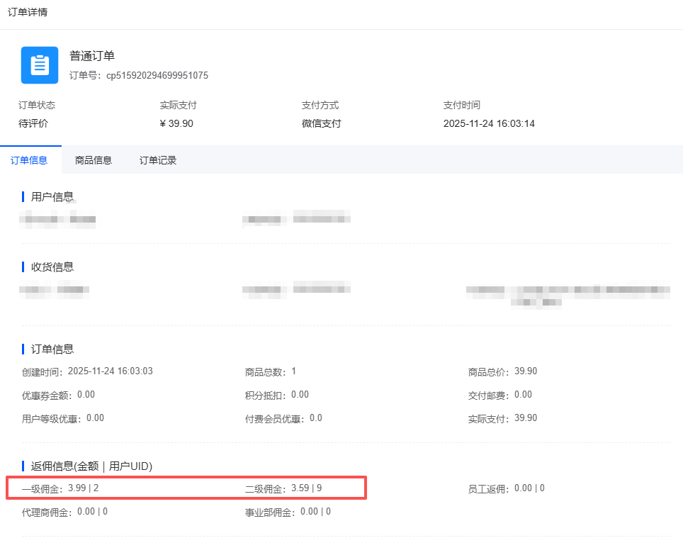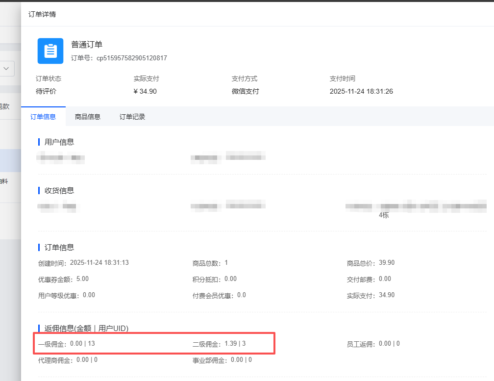 请帮忙看下这个3号和9号,一个推广订单显示是0但是有佣金余额,一个推广订单显示1但是佣金是0,对比推广订单,截图上面的两个都是12.2号确认收货的,为什么另一个佣金没到账,佣金到账的为什么推广订单显示是0