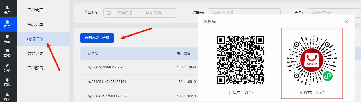 当扫“收银收款”码时,会有对应的选择,比如选择商品时,展示所有的商品,选择会员充值时自动关联会员充值多少赠送多少,当选择开通会员时,自动关联对应的开通会员等级,如若不然这个收银订单只是输入金额充值,但是这个钱用于哪了?起到什么作用?似乎 没有对应的关联关系……