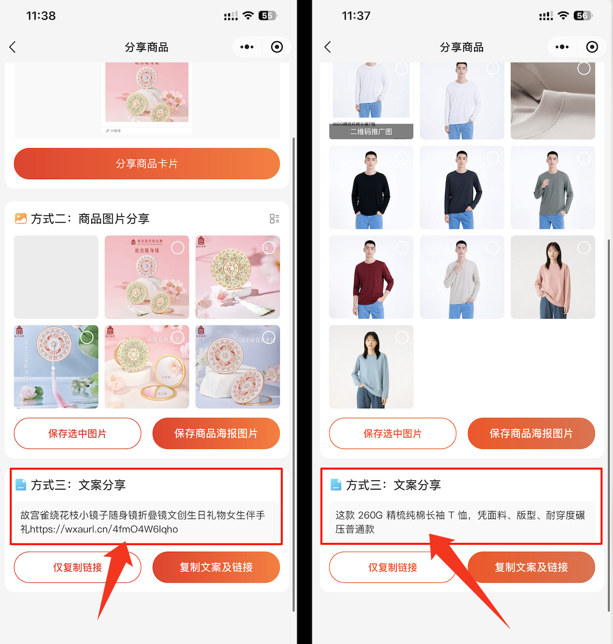 请问一下,在分销页面中,方式三没有显示商品短链接(复制也没有),只能复制文案,这个是需要开启什么功能吗?左图是 CRMEB官方小程序正常显示,右图为我们的小程序