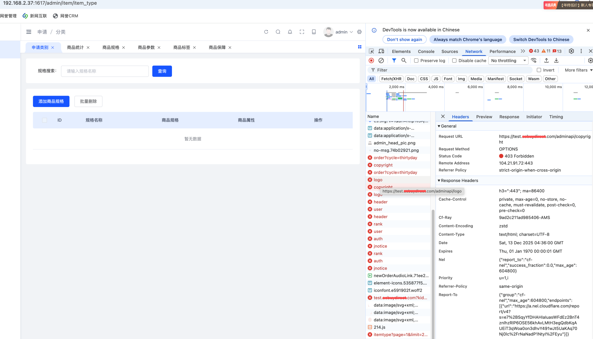如上图,后端adminapi连接的是本地使用内网穿的另外一台机子的接口,连接不上,但测试过单独访问是可以访问的,