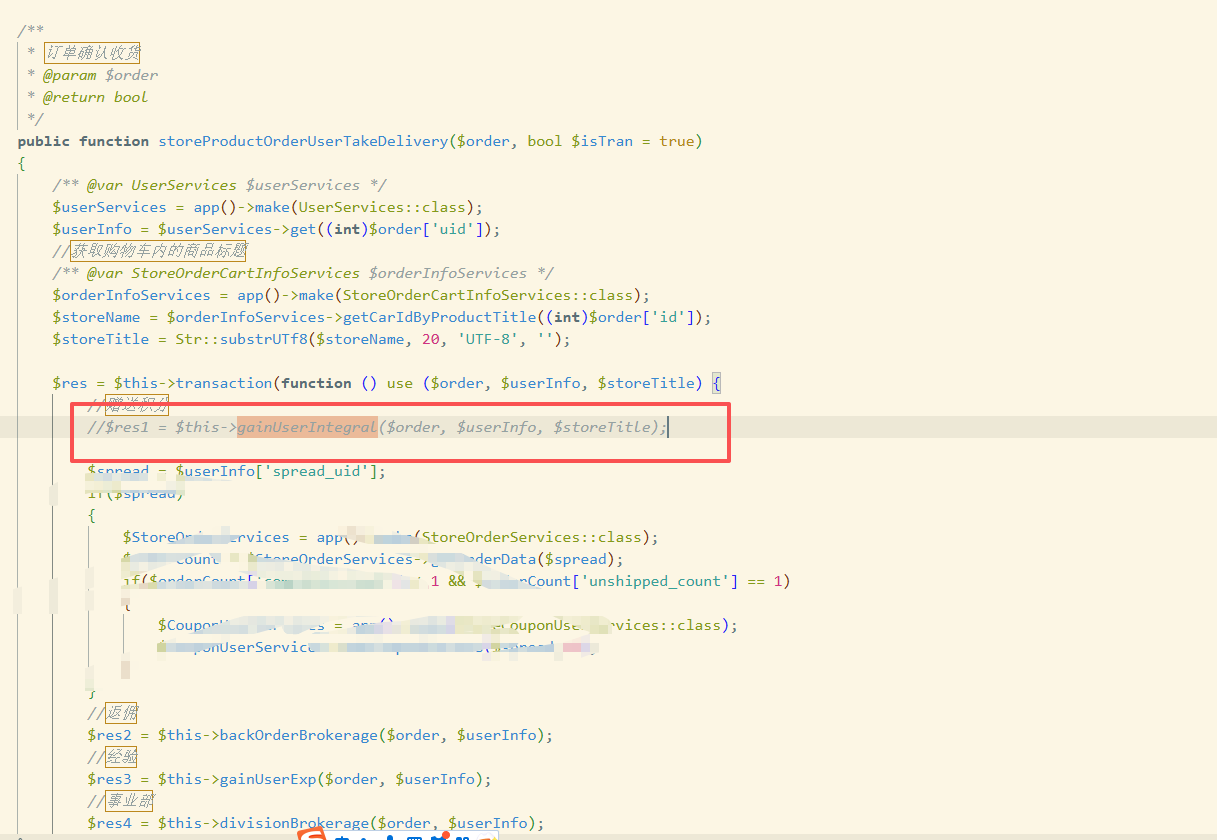 我这边遇到一个问题,就是商品自动收货后会送积分,但是我把这个送积分这部分代码注释掉了,但是还是送了。还需要改动其他的地方吗