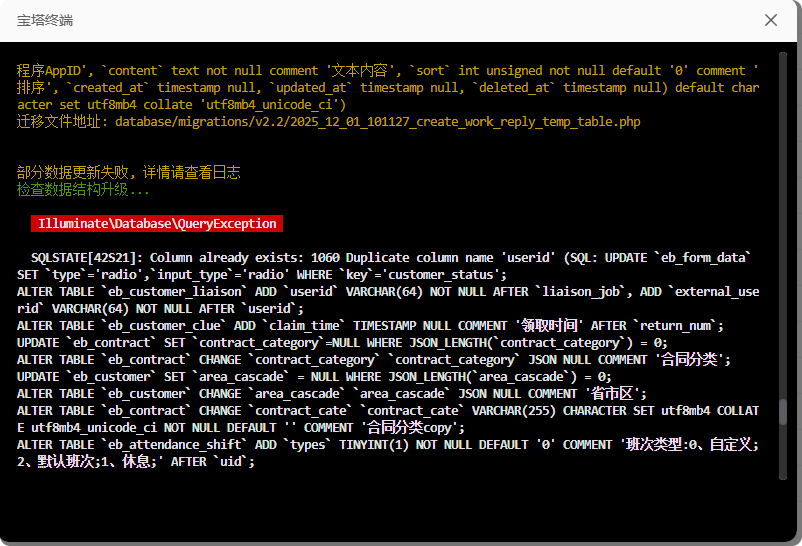 为何升级后,管理员没有登录权限了,然后更新显示数据库执行失败,这该怎么解决?
