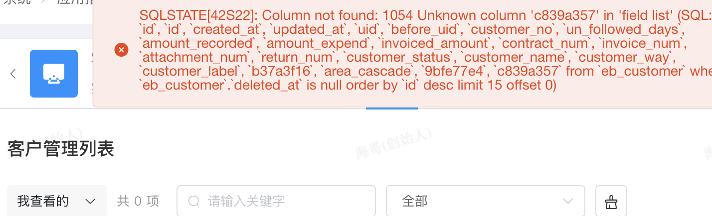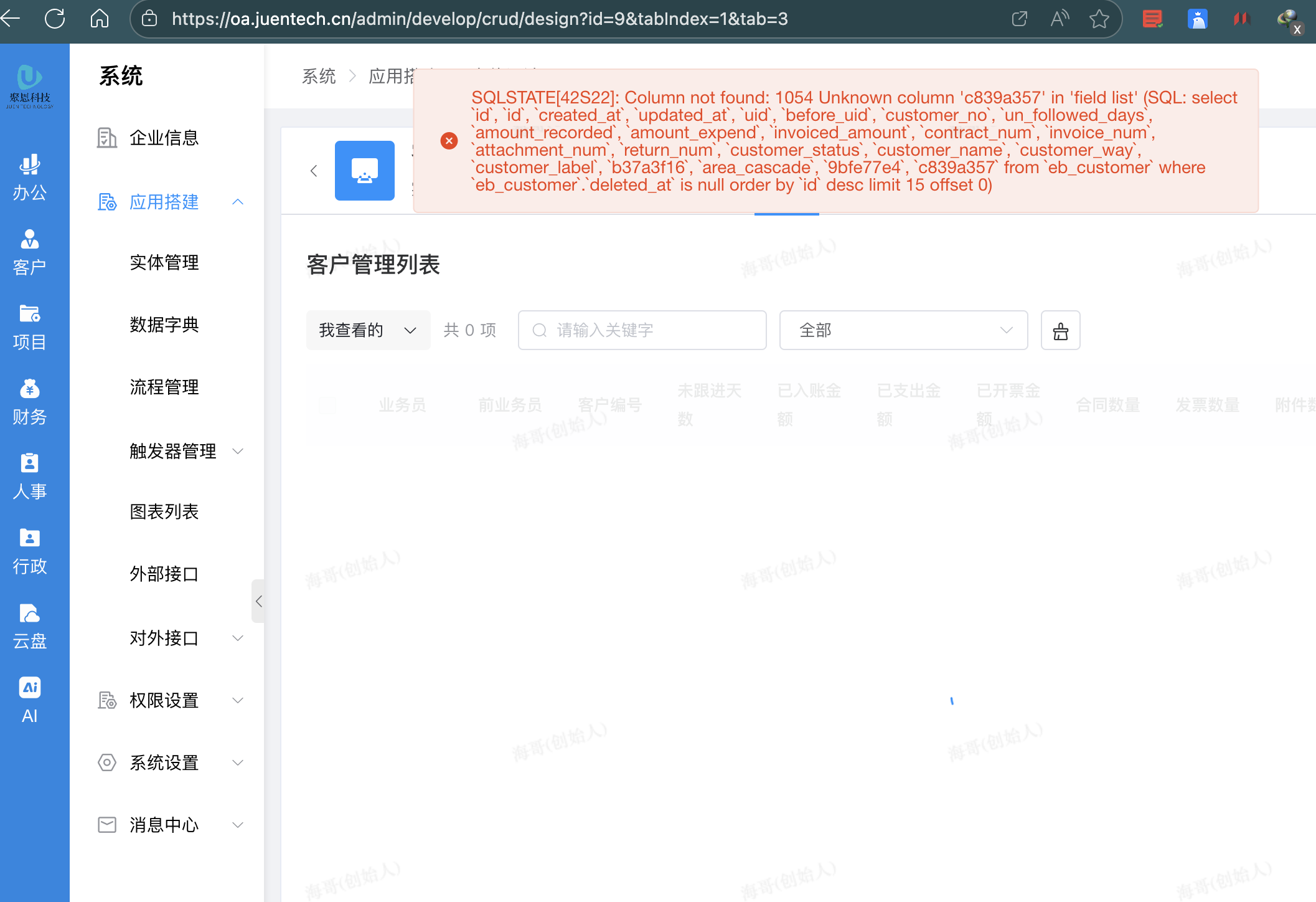 系统-应用搭建-列表设计-实体管理-客户管理-列表设计 报错: