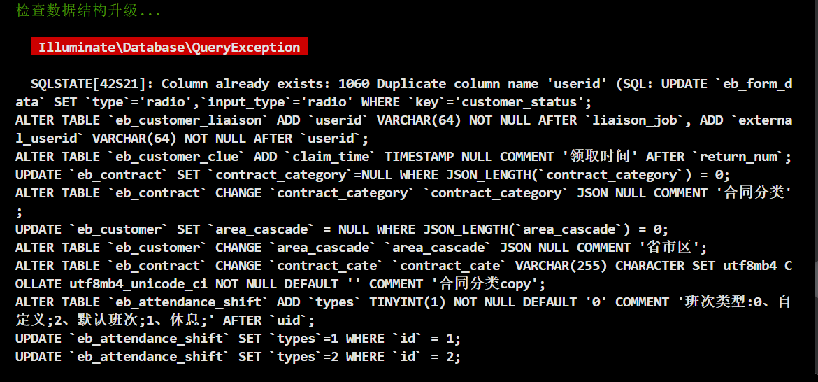 陀螺匠2.1升级2.2,提示错误如下,错误截图如下:到数据结构升级下面开始出错,