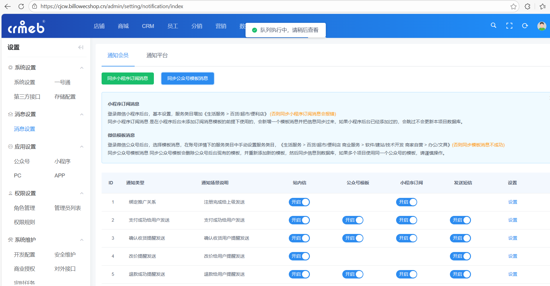 多门店同步公众号模板消息一直提示队列执行中,请稍后查看 怎么一直老是提示这个,生活服务 > 百货/超市/便利店 商业服务 > 软件/建站/技术开发 商家自营 > 办公/文具也设置了的