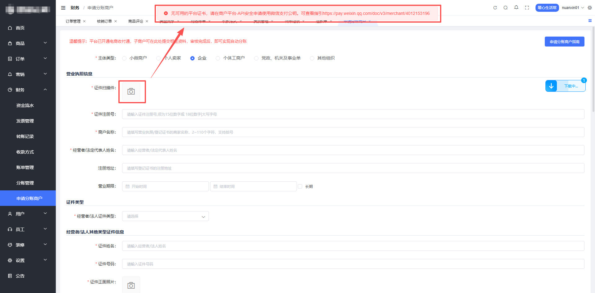 平台后台服务商支付和收付通都开通并配置