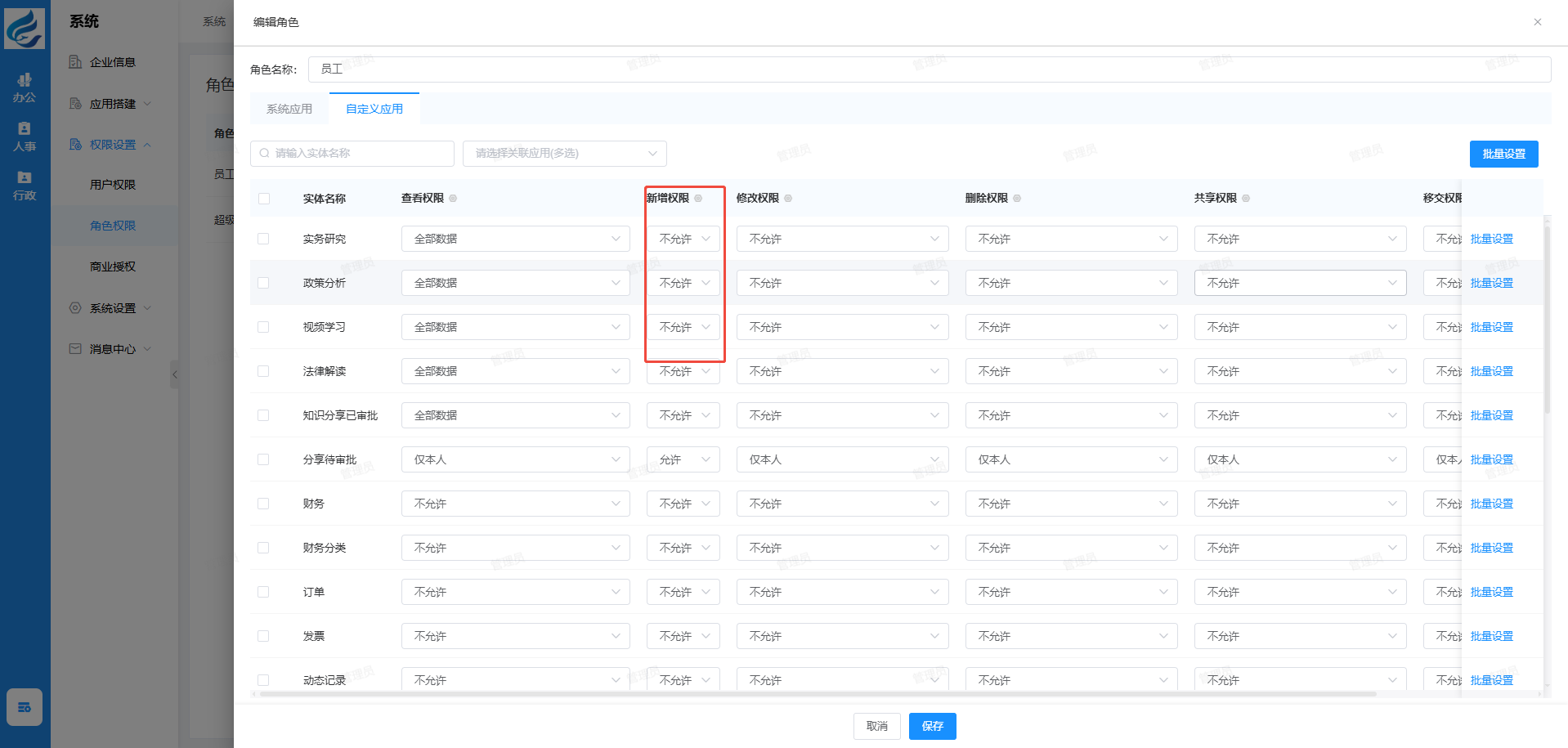 实体 低代码的 评论权限和新增权限如何分开 这边需要能评论但是不能新增