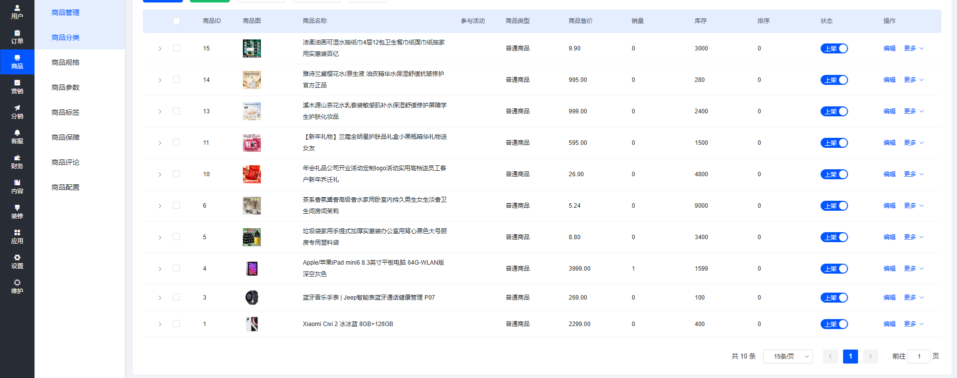 为什么我PC只显示二个分类的商品。我后台加了三个分类商品了。每个分类都有好几个商品了