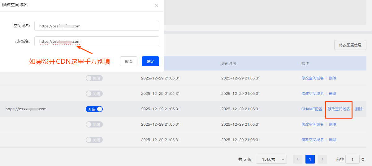 用了外部存储的有一个小地方千万别忽略了,拿我的七牛来说,如果你只是存储在七牛,没有做CDN域名,这里千万没填,填了就分享不了海报,删除这里填的域名就可以了。