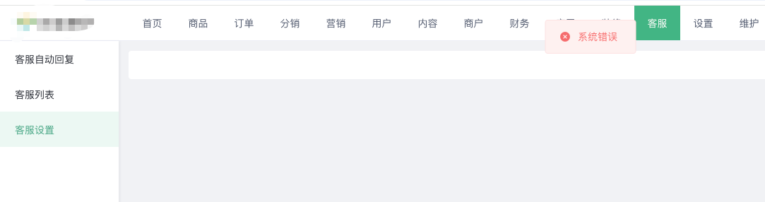 平台客服未开启,按照指导配置完毕后,提升系统错误。