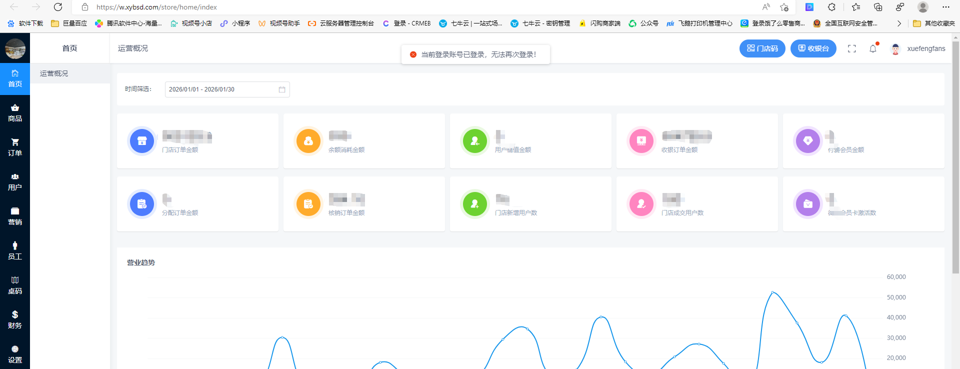 商城更新以后收银台登录不了,所有店员账号登录的时候都显示一登录,麻烦尽快解决,很着急