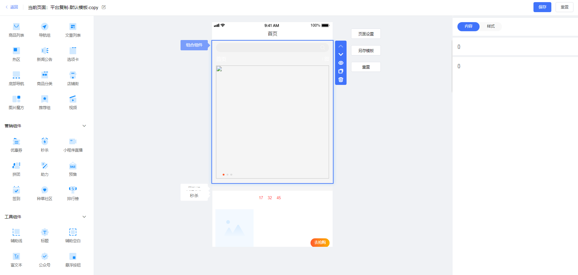 页面装修全是白板,