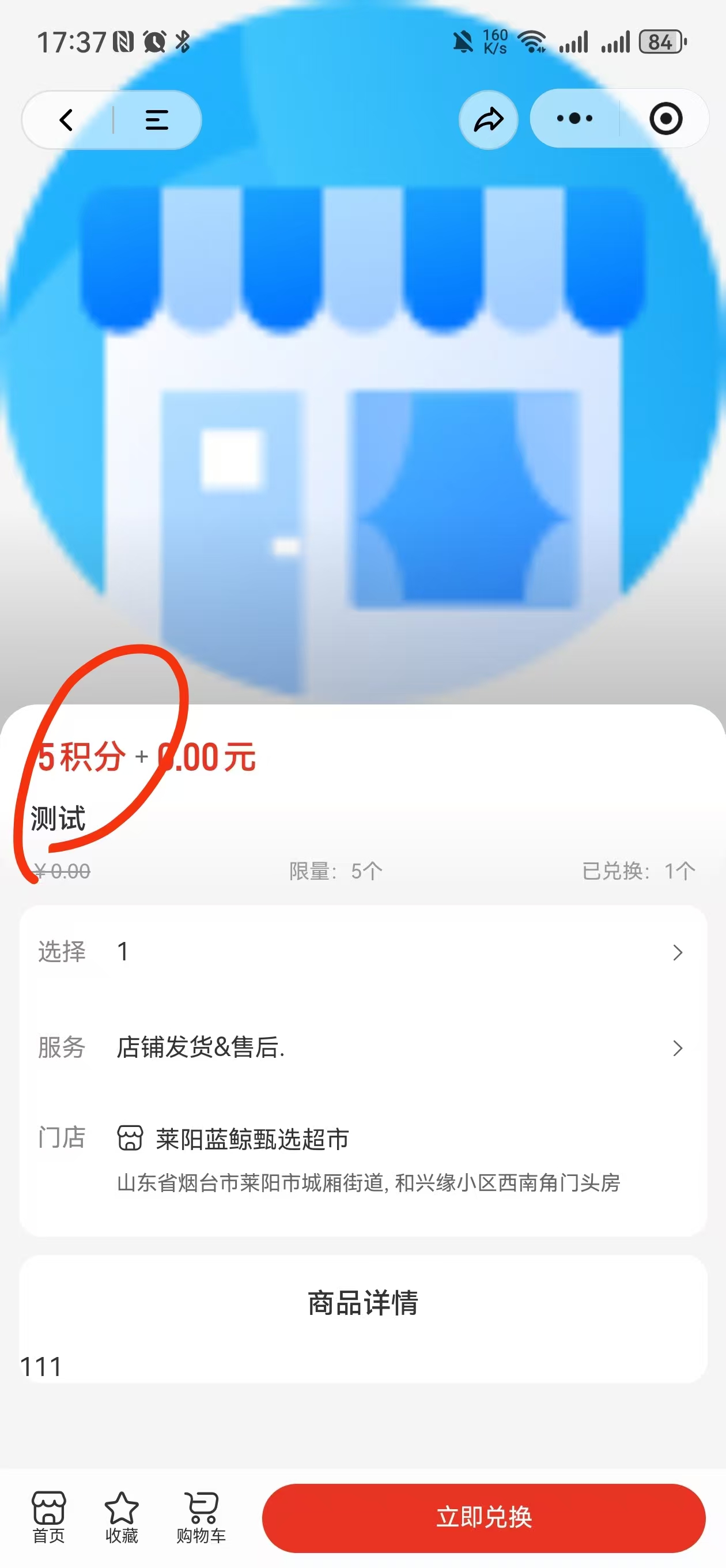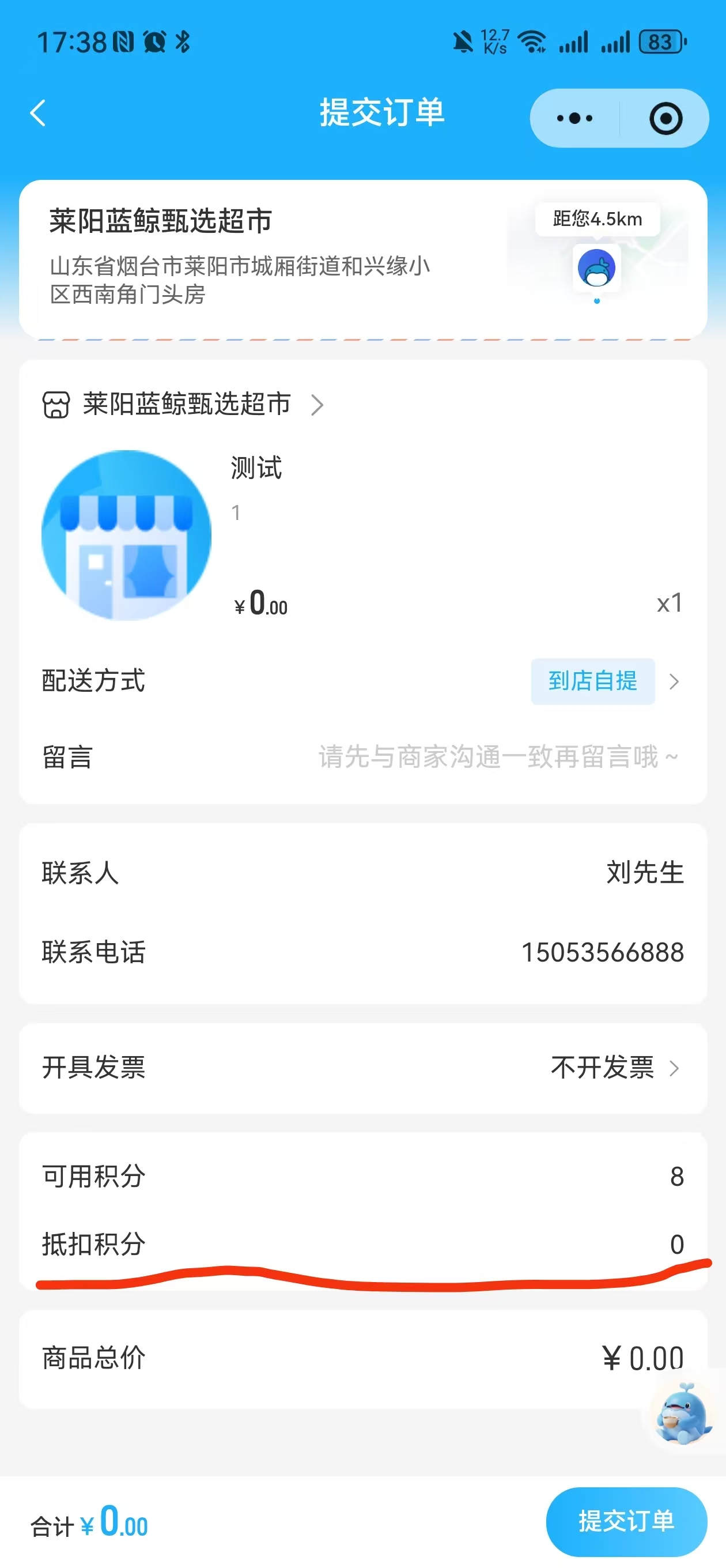 最新版的多门店V3.5.0版本,设置了一个积分商品需要5个积分兑换,可是下单支付页面显示“抵扣积分”为0,这是哪里的问题?