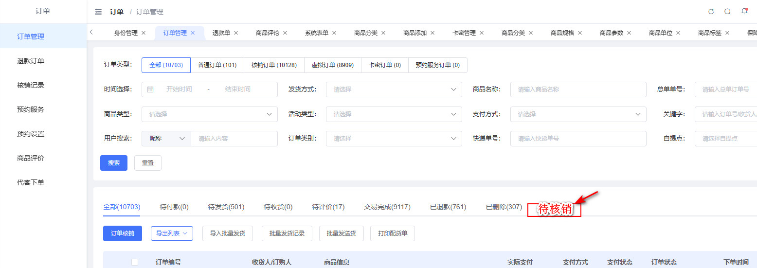如题,希望能够在订单管理页面,增加一个“待核销”的筛选标签,这样可以非常快捷的进行核销订单的筛选。