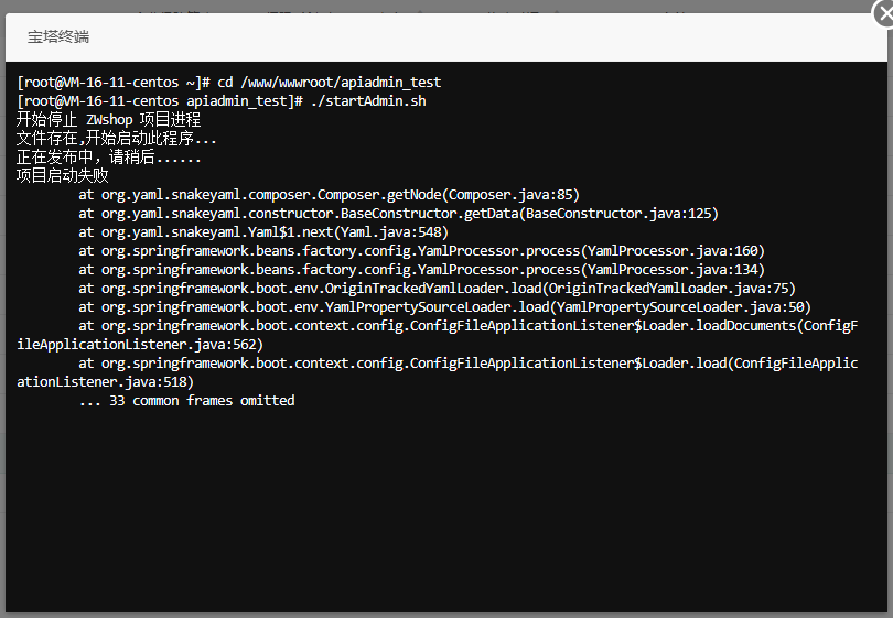 全新安装方式,Admin及Front后端yml文件及支付配置都正确,打包maven也使用3.6.1版本,打包成功后Admin.jar和Front.jar上传站点后,启动以就会出现错误提示,