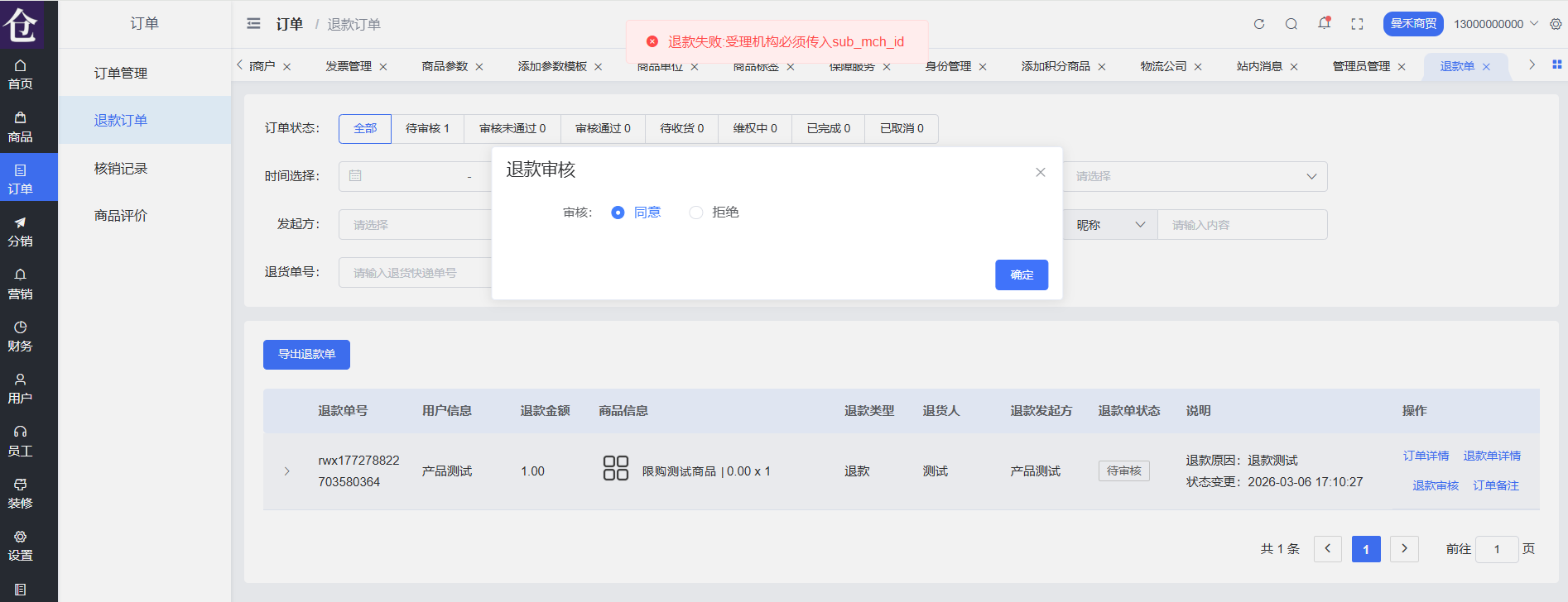 使用微信分账支付,支付成功,退款审核通过时提示这个信息,不知道什么原因导致的
