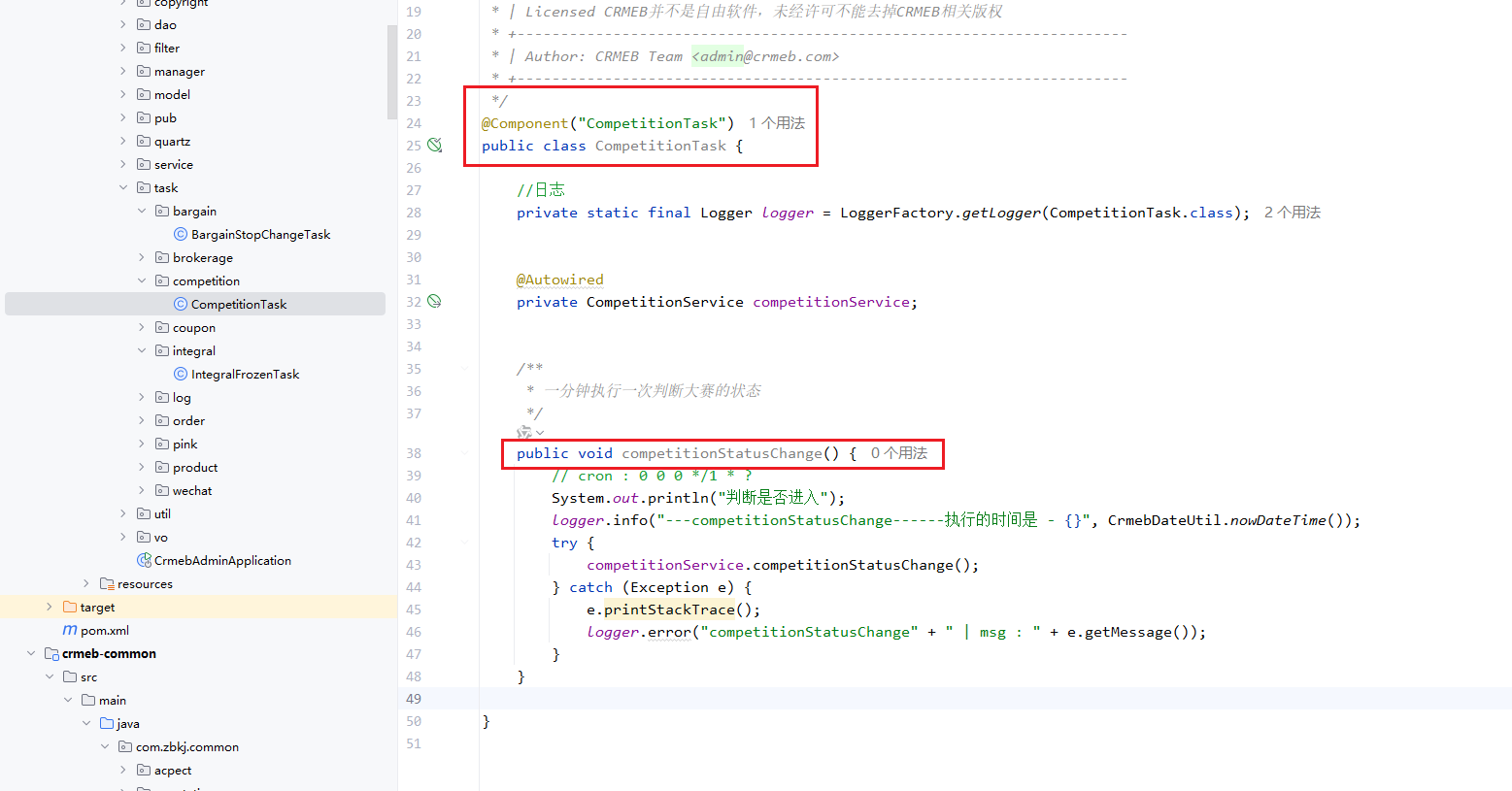 我自己写的定时任务 报错 org.springframework.beans.factory.NoSuchBeanDefinitionException: No bean named 'CompetitionTask' available