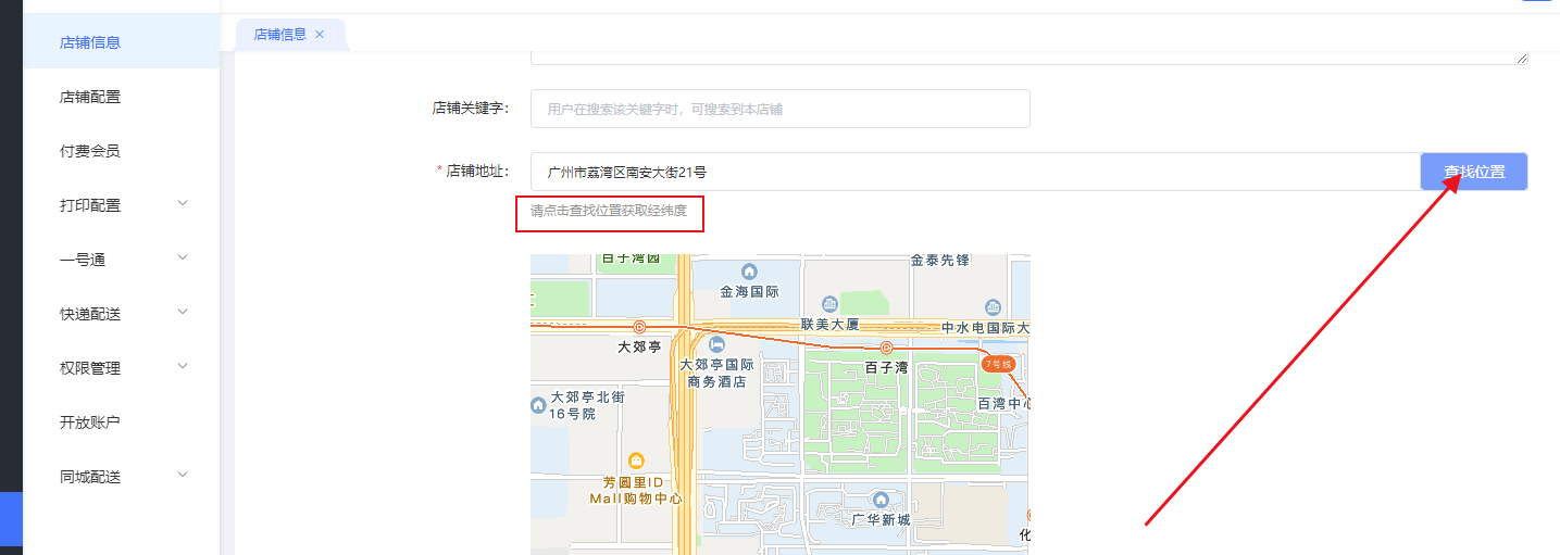 还有店铺设置店铺地址点击“查找位置”一点反应都没有