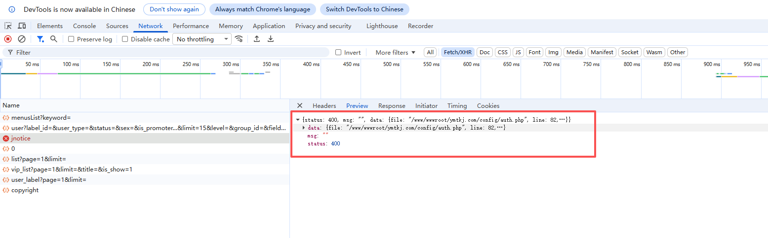 后台部分界面报服务器内部错误,查看错误提示如下,有做过二次开发,二开后测试后台功能都正常,今天突然报这个错误,帮看看是什么问题,谢谢。